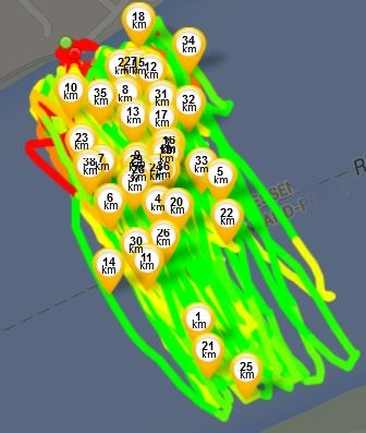 Im Rahmen dieser Trainingssession über rund 39 km während einer „aktiven Mittagspause“ wurden mit Runtastic Pro sämtliche GPS-Werte wie auch Puls genommen und dadurch (wohl) der Kalorienverbrauch ermittelt, wobei dieser laut Runtastic erstaunlich niedrig ausfallen soll; vergleichbare Rechner kommen hier auf rund 1.800 kcal.